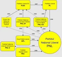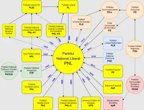 - ^ "Tribunalul București dispune fuziunea PNL cu PDL. Noua formațiune, denumită PNL" (in Romanian). 6 October 2014.