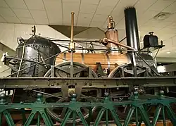The first floor's East Wing (called 1 East) has exhibits that feature transportation and technology; they include America on the Move and Lighting a Revolution. The John Bull locomotive is the signature artifact. Exhibits within America on the Move include Southern Railway locomotive no. 1401, Santa Cruz Railroad no. 3, and a Chicago "L" elevated station diorama featuring a CTA 6000-series railcar.