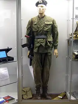 Personnel, such as paratroopers, motorcyclists, and tank troops, wore additional items with their uniforms identifying them as such. The parachute units of NVA used Polish wz. 63 helmets.[38][39]