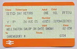- ^ "National Rail Enquiries – Ticket Types". National Rail Enquiries. 22 August 2022. Archived from the original on 22 August 2022. Retrieved 22 August 2022.