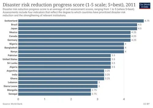 90. ^ "Disaster risk reduction progress score". Our World in Data. Retrieved 2024-04-04.
