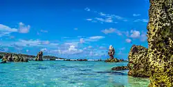 Coastal beach area of Nauru, with its distinctive natural coral pillars