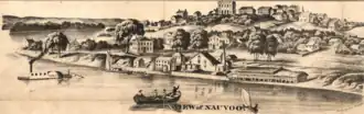 The area of Nauvoo was first called Quashquame, named in honor of the Native American chief who headed a Sauk and Meskwaki settlement numbering nearly 500 lodges. By 1827, white settlers had built cabins in the area, and by 1829, it was sufficiently settled to warrant a post office. In 1832, the town, by then called Venus, was one of the contenders for the new county seat. However, the honor was awarded to a nearby city, Carthage. In 1834, the name Venus was changed to Commerce.[3][4]