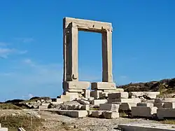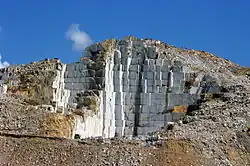 The quarrying of marble on Naxos began before 550 BCE.[24] Naxian marble was used for the creation of the roof tiles at ancient Olympia and on the Athenian Acropolis,[25] As of 2016, about 5,000 m³ of high value Naxian marble was being exported annually.[26]