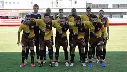 Nea Salamina was again relegated to the second division during the 2009–10 season[101] but was promoted to first division the following year.[102] In the 2011–12 season, the team finished in seventh place.[103] Due to finishing eleventh in the 2012–13 season, the team faced the 2012–13 Cypriot Second Division side Anagennisi Deryneia in a single-legged playoff for one spot in the 2013–14 Cypriot First Division. Nea Salamina won by 3–0, retaining its first division spot for the 2013–14 season.[104] The next season, the team finished in seventh place.[105] Nea Salamina won 54 points, but because on 17 May 2013 the team were deducted three points by CFA because they failed to meet the financial criteria of UEFA,[106] they finished the season with 51 points.