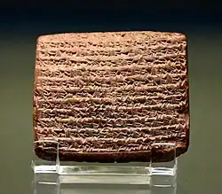 Nebuchadnezzar's military career began in the reign of his father, though little information survives. Based on a letter sent to the temple administration of the Eanna temple, it appears that Nebuchadnezzar participated in his father's campaign to take the city of Harran in 610 BC.[34] Harran was the seat of Ashur-uballit II, who had rallied what remained of the Assyrian army and ruled the Neo-Assyrian rump state.[35] The Babylonian victory in the Harran campaign and the defeat of Ashur-uballit in 609 BC marked the end of the ancient Assyrian monarchy, which would never be restored.[36] According to the Babylonian Chronicles, Nebuchadnezzar also commanded an army in an unspecified mountainous region for several months in 607 BC.[34]