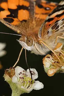 An Australian painted lady feeding on a flower's nectar