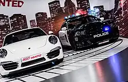 Most of the games in the franchise include police pursuits in some form or other. In some of the games featuring police pursuit (e.g. Need for Speed III: Hot Pursuit), the player can play as either the felon or the cop.[18] The concepts of drifting and dragging were introduced in Need for Speed: Underground. These new mechanics are included in the tournament/career mode aside from the regular street races. In drift races, in games like Underground and Need for Speed (2015), the player must defeat other racers by totaling the most points, earned by the length and timing of the drift made by the player's vehicle.[19] In drag races, the player must finish first to win the race, though if the player crashes into an obstacle or wall, the race ends.[19] In Need for Speed Payback, the player has to earn a certain number of points to win; increase their multiplier based on how many points they get, whilst passing through a limited number of checkpoints.[20]
