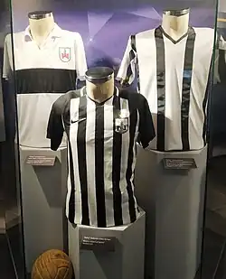 Neftçi's traditional kit was composed of black shirts, white shorts and socks of the same colour. Although through the years these two have gone from alternating between white and black stripes.[74]