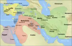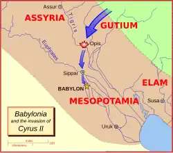 Map of the path of Cyrus the Great during his 539 BC invasion of Babylonia.