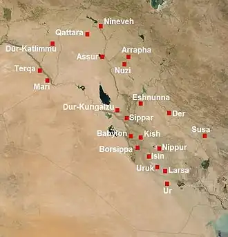 Major cities of Lower Mesopotamia in the 1st millennium BC