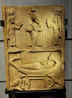 Nephthys is regarded as the mother of the funerary deity Anubis (Inpu) in some myths.[4][5] Alternatively Anubis appears as the son of Bastet[6] or Isis.[7] In Nubia, Nephthys was said to be the wife of Anubis.[1]