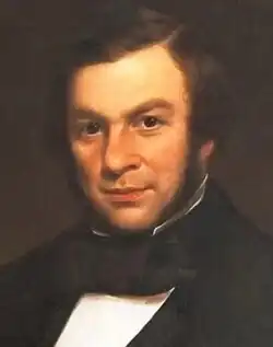 In 1821, Alexis Bouvard published astronomical tables of the orbit of Uranus.[36] Subsequent observations revealed substantial deviations from the tables, leading Bouvard to hypothesize that an unknown body was perturbing the orbit through gravitational interaction.[37] In 1843, John Couch Adams began work on the orbit of Uranus using the data he had. He requested extra data from Sir George Airy, the Astronomer Royal, who supplied it in February 1844. Adams continued to work in 1845–1846 and produced several different estimates for the position of an undiscovered planet beyond Uranus.[38][39]