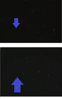 Some of the earliest known telescopic observations ever, Galileo's drawings on 28 December 1612 and 27 January 1613 (New Style) contain plotted points that match what is now known to have been the positions of Neptune on those dates. Both times, Galileo seems to have mistaken Neptune for a fixed star when it appeared close—in conjunction—to Jupiter in the night sky.[33] Hence, he is not credited with Neptune's discovery. At his first observation in December 1612, Neptune was almost stationary in the sky because it had just turned retrograde that day. This apparent backward motion is created when Earth's orbit takes it past an outer planet. Because Neptune was only beginning its yearly retrograde cycle, the motion of the planet was far too slight to be detected with Galileo's small telescope.[34] In 2009, a study suggested that Galileo was at least aware that the "star" he had observed had moved relative to fixed stars.[35]