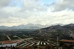 ![]() Lower Neretva Valley - pictured from behind the walls of Počitelj, looking north and upstream towards Počitelj village and its Citadel, and further behind Mostar | |