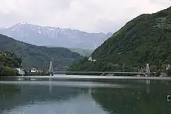Jablanica lake is a large artificial lake on the Neretva river, right below Konjic where the Neretva expands into a wide valley. The river provided fertile, agricultural land before the lake flooded most of it. The lake was created in 1953 after construction of a large gravitational hydroelectric dam near Jablanica in central Bosnia and Herzegovina. The lake has an irregular, elongated shape, and its width varies along its length. The lake is a popular vacation destination.[2]