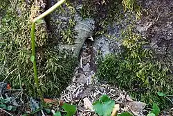 Some birds build nests in trees, some (such as eagles, vultures, and many seabirds) will build them on rocky ledges, and others nest on the ground or in burrows.[5] Each species has a characteristic nest style, but few are particular about where they build their nests. Most species will choose whatever site in their environment best protects their nest, taking into account the nest's style. Several species will build on a cactus whenever possible. The bushtit and Bullock's oriole will suspend their nests from the tips of slender branches.[1] The oropendolas take hanging nests to the extreme, constructing pouches up to 1.8 metres (5.9 ft) tall using hanging vines as their base.[1][6] The hanging nest is attached to thin tree branches, discouraging predation.[6] Other species seek out crevices, using buildings or birdhouses when tree holes are not available.[1]