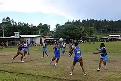 ![]() Malawi (red) playing Fiji (blue) at the 2006 Commonwealth Games | |