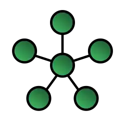 Hybrid topology is also known as hybrid network.[19] Hybrid networks combine two or more topologies in such a way that the resulting network does not exhibit one of the standard topologies (e.g., bus, star, ring, etc.). For example, a tree network (or star-bus network) is a hybrid topology in which star networks are interconnected via bus networks.[20][21] However, a tree network connected to another tree network is still topologically a tree network, not a distinct network type. A hybrid topology is always produced when two different basic network topologies are connected.