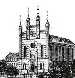 On 29 March 1867, the synagogue was unveiled, designed by the Prussian architect Friedrich Weise and built in the popular Orientalist style. The city held celebrations for 3 days upon its inauguration. Despite serving only about 1% of the population, the Synagogue was a proud hallmark of the Neuss skyline.[7] The synagogue community's size peaked at 316 members in 1890.