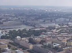 The first concrete bridge across Neva, the Volodarsky Bridge, was built in 1936.[35] During World War II, from 8 September 1941 to 27 January 1944, Leningrad was in the devastating German Siege. On 30 August 1941, the German army captured Mga and came to Neva. On 8 September Germans captured Shlisselburg and cut all land communications and waterways to St. Petersburg (then Leningrad). The siege was partly relieved in January 1943, and ended on 27 January 1944.[26]
