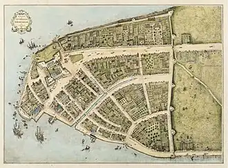 - ^ Several reproductions of the Castello plan can be found on-line: New Netherland Project, New York Public Library, Wikimedia Commons. Colored versions from 1916 can be found here: New York University and here:New York Historical Society. A "Digital redraft of the Castello Plan of New Amsterdam in New Netherland in 1660" is an interactive map that can be found on ekamper.net Archived June 2, 2019, at the Wayback Machine. This map allows you to click in various places to learn more about the ownership and use of the land and buildings. All URLs accessed on February 17, 2010. A Google Earth File of the Castello Plan is posted on bbs.keyhole.com Archived July 7, 2012, at archive.today.