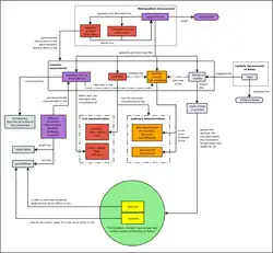 The founding of John Law's Company in 1717, once again highlighted the economic importance of the fur trade.[55] This merchant association, like its predecessor the Compagnie des Cent Associés, regulated the fur trade to the best of its abilities imposing price points, supporting government sale taxes and combating black market practices. However, by the middle half of the 18th century the fur trade was in a slow decline.[56]