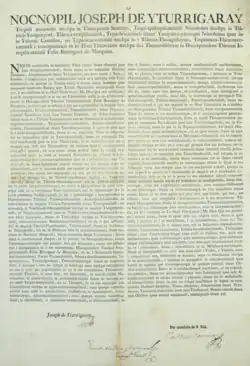 Official document of the New Spain government in Nahuatl announcing the transfer of powers from the outgoing viceroy Félix Berenguer de Marquina to José de Iturrigaray, who would serve until his arrest for his support of popular sovereignty in 1808