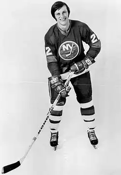 Former California Golden Seals executive vice president Bill Torrey was named as the team's general manager at the same press conference as the franchise's name unveiling.[11] The Islanders secured veteran forward Ed Westfall, defenseman Gerry Hart, and goaltender Billy Smith in the 1972 expansion draft, along with junior ice hockey stars Billy Harris, Lorne Henning, and Bobby Nystrom in the 1972 amateur draft.[13] Soon after the draft, Phil Goyette was named as the team's first head coach, however he was fired halfway through the season and replaced with Earl Ingarfield and assistant coach Aut Erickson.[14] Unlike most other expansion teams' general managers, Torrey made few trades for veteran players in the early years, as he was committed to building the team through the draft. Torrey stated, "I told the owners that we're not going to beat this team next door by taking the castoffs from others teams. We'd have to develop our own stars."[13] Before the season began, Westfall was named the team's first captain.[15][16]
