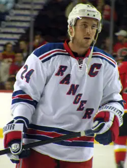 On May 13, 2011, Rangers forward Derek Boogaard was found dead in his Minnesota apartment.[116] On June 29, the Rangers bought out captain Chris Drury's contract.[117] On July 3, the Rangers signed free agent Brad Richards to a nine-year contract.[118] On September 12, Ryan Callahan was named the 26th captain in the Rangers' history.[119]