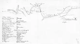 Beginning in mid-December 1776, Washington planned a two-pronged attack on Rall's outpost in Trenton, with a third diversionary attack on Donop's outpost in Bordentown. The plan was aided by the fortuitous presence of a militia company that drew Donop's entire 2,000-man force away from Bordentown to the south that resulting in a skirmish at Mount Holly on December 23. The consequence of this action was that Donop was not in a position to assist Rall when Washington's attack on Trenton took place.[43] Washington and 2,400 men stealthily crossed the Delaware River and surprised Rall's outpost on the morning of December 26 in a street-to-street battle, killing or capturing nearly 1,000 Hessians. This action not only significantly boosted the army's morale; it also brought Cornwallis out of New York. He reassembled an army of more than 6,000 men and marched most of them against a position Washington had taken south of Trenton. Leaving a garrison of 1,200 at Princeton, Cornwallis then attacked Washington's position on January 2, 1777, and was three times repulsed before darkness set in.[44] During the night Washington once again stealthily moved his army, going around that of Cornwallis with the intention of attacking the Princeton garrison.[45]