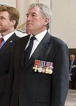 Rear Admiral David Ledson, ONZM, RNZN, wearing the medal for Officer of the New Zealand Order of Merit.