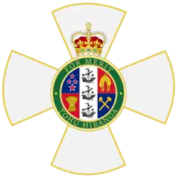The New Zealand Order of Merit (Māori: Te Kāhui Tohu Hiranga[1]) is an order of merit in the New Zealand royal honours system. It was established by royal warrant on 30 May 1996 by Elizabeth II, Queen of New Zealand, "for those persons who in any field of endeavour, have rendered meritorious service to the Crown and nation or who have become distinguished by their eminence, talents, contributions or other merits",[2] to recognise outstanding service to the Crown and people of New Zealand in a civil or military capacity.
