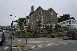 The urban district was enlarged in 1902 and 1934; the 1934 expansion included taking in the neighbouring villages of Crantock and St Columb Minor.[43] In 1957 the urban district council moved its headquarters to the former Manor hotel on Marcus Hill, which became known as the Municipal Buildings.[45]