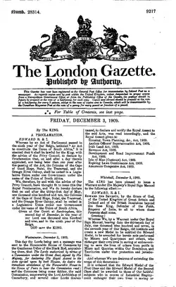 The London Gazette, "Published By Authority" (of the Stationers' Company) on 3 December 1909