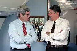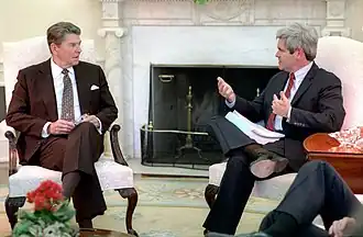 Gingrich's analysis of polls and public opinion identified the group's initial focus.[43] Ronald Reagan adopted the "opportunity society" ideas for his 1984 re-election campaign, supporting the group's conservative goals on economic growth, education, crime, and social issues. He had not emphasized these during his first term.[44] Reagan also referred to an "opportunity" society in the first State of the Union address of his second term.[43]