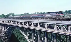Two international bridges connect the city to Niagara Falls, Ontario. The Rainbow Bridge connects the two cities with passenger and pedestrian traffic and overlooks the Niagara Falls, while the Whirlpool Rapids Bridge, which formerly carried the Canadian National Railway, now serves local traffic and Amtrak's Maple Leaf service.