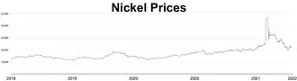 101. ^ S, Saptakee (February 11, 2025). "Nickel Prices Plunge in 2025: Can Demand Revive the Market by 2030?". Carbon Credits. Retrieved April 24, 2025.