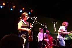 ![]() Chris Thile, Sara Watkins, and Sean Watkins at Michigan Theater in Ann Arbor, Michigan on the Farewell (For Now) Tour, October 2007 | |