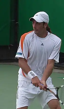 Nicolás Alejandro Massú Fried (Spanish pronunciation: [nikoˈlas maˈsu]; born 10 October 1979), nicknamed El Vampiro (Spanish, 'the vampire'), is a Chilean tennis coach and a former professional player. A former world No. 9 in singles, he won the singles and doubles gold medals at the 2004 Athens Olympics. He is the only man to have won both gold medals at the same Games since the re-introduction of Olympic tennis in 1988,[2] and they were the first two Chile's Olympic gold medals. Massú also reached the final of the 2003 Madrid Masters and won six singles titles. He was the coach of 2020 US Open champion and former world No. 3 Dominic Thiem from 2019 to 2023.[3] He is currently the coach of Hubert Hurkacz.