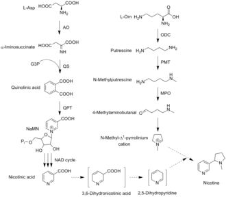 - ^ Lamberts BL, Dewey LJ, Byerrum RU (May 1959). "Ornithine as a precursor for the pyrrolidine ring of nicotine". Biochimica et Biophysica Acta. 33 (1): 22–6. doi:10.1016/0006-3002(59)90492-5. PMID 13651178.