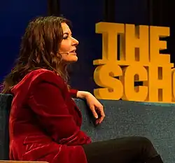 Lawson next hosted her own cooking show television series, Nigella Bites, which ran from 1999 to 2001 on Channel 4,[36][37] followed by a Christmas special in 2001.[38] Victor Lewis-Smith, a critic usually known for his biting comments, praised Lawson for being "formidably charismatic".[5] The first series of Nigella Bites averaged 1.9 million viewers,[39] and won her the Television Broadcast of the Year at the Guild of Food Writers Awards[40] and the Best Television Food Show at the World Food Media Awards in 2001.[41] The show yielded an accompanying best-selling recipe book, also called Nigella Bites,[42] for which Waterstone's book stores reported UK sales of over 300,000.[43] The book won the WH Smith Lifestyle Book of the Year award.[44]