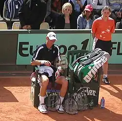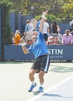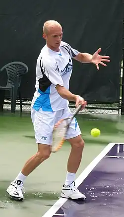 Nikolay Vladimirovich Davydenko (Russian: Никола́й Влади́мирович Давыде́нко ⓘ; born 2 June 1981) is a Russian former professional tennis player. He achieved a career-high singles ranking of World No. 3 in November 2006. Davydenko's best result in a Grand Slam tournament was reaching the semi-finals, which he accomplished on four occasions: twice each at the French Open and the U.S. Open, losing to Roger Federer in all but one of them. His biggest achievement was winning the 2009 ATP World Tour Finals, and he also won three ATP Masters Series. In mid-October 2014 Davydenko retired from playing professionally.[2]