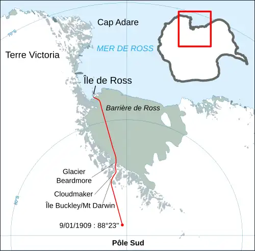 - ^ Shackleton, p. 205. The North reference was to Robert Peary's then-farthest north of 87° 6' N.