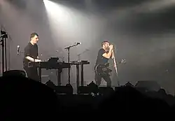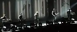 ![]() Nine Inch Nails performing at the O2 Apollo Manchester in 2022; (L–R): Ilan Rubin, Trent Reznor, Alessandro Cortini, Atticus Ross, Robin Finck | |