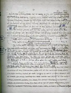 In June 1952 Orwell's widow, Sonia Brownell, sold the sole remaining manuscript at a charity auction for £50.[43] The draft remains the only surviving literary manuscript from Orwell, and is held at the John Hay Library at Brown University in Providence, Rhode Island, US.[44][45]