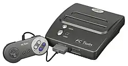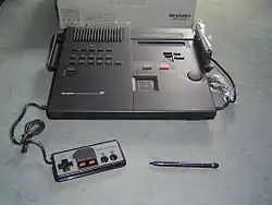 Sharp Corporation produced three licensed variants of the Famicom in Japan, all of which prominently display the shortened moniker rather than the official name, Family Computer.[i] One variant was a television set with an integrated Famicom; originally released in 1983 as the My Computer TV in 14-inch (36 cm) and 19-inch (48 cm) models,[114] it was later released in the United States in 1989 as a 19-inch model named the Video Game Television.[115][116] Another variant is the Twin Famicom console, which was released in 1986 and combines a Famicom with a Famicom Disk System.[117] Sharp then produced the Famicom Titler in 1989; intended for video capture and production, it features internal RGB video generation and video output via S-Video, as well as inputs for adding subtitles and voice-overs.[118]