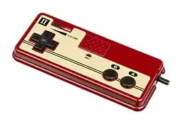 During development, Yamauchi directed engineers to reduce costs by removing non-essential components. However, he insisted on including a low-cost circuit and connector that allowed the CPU to send or receive unmodified signals, enabling future hardware expansions such as modems or keyboards.[33] This built-in capability led some within Nintendo to refer to the console as "Yamauchi's Trojan Horse": it entered homes as a simple gaming device with two controllers, and yet contained features far beyond its apparent function. A 1989 corporate report later acknowledged, "In the initial stages of [the system's] development, we foresaw these possibilities... we built a data communications function into the system."[34] Lead engineer Masayuki Uemura credited luck for this foresight, while colleague Genyo Takeda remarked that Uemura's lack of experience allowed him to attempt what others might have deemed unfeasible. Design decisions were also carefully considered. Yamauchi took a hands-on role in determining the controller layout, casing shape, and overall aesthetic. The final design featured a directional pad and two buttons on the right controller, a microphone on the left controller, rounded edges, and a red and white color scheme deliberately made to appear more like a toy than a computer.[35]