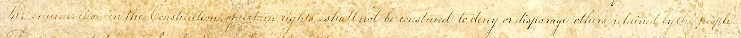 The enumeration in the Constitution, of certain rights, shall not be construed to deny or disparage others retained by the people.[14]
