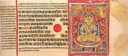 Kalpasutra folio on Mahavira Nirvana. Note the crescent shaped Siddhashila, a place where all siddhas reside after nirvana.